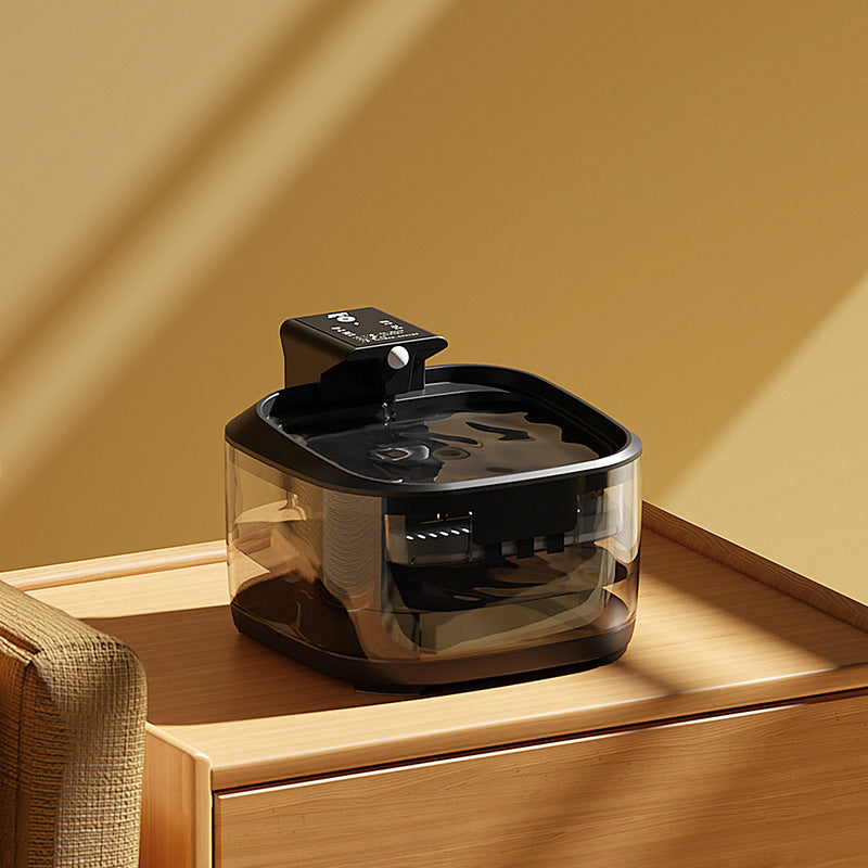 Smart Pet Water Fountain featuring a digital display for easy monitoring and control of water levels. This stylish black water dispenser includes a charging cable for convenient power supply and a filter to provide fresh and clean water for your pet. The modern design and smart features make this fountain easy to use and maintain, offering a sleek and high-tech solution for pet hydration.