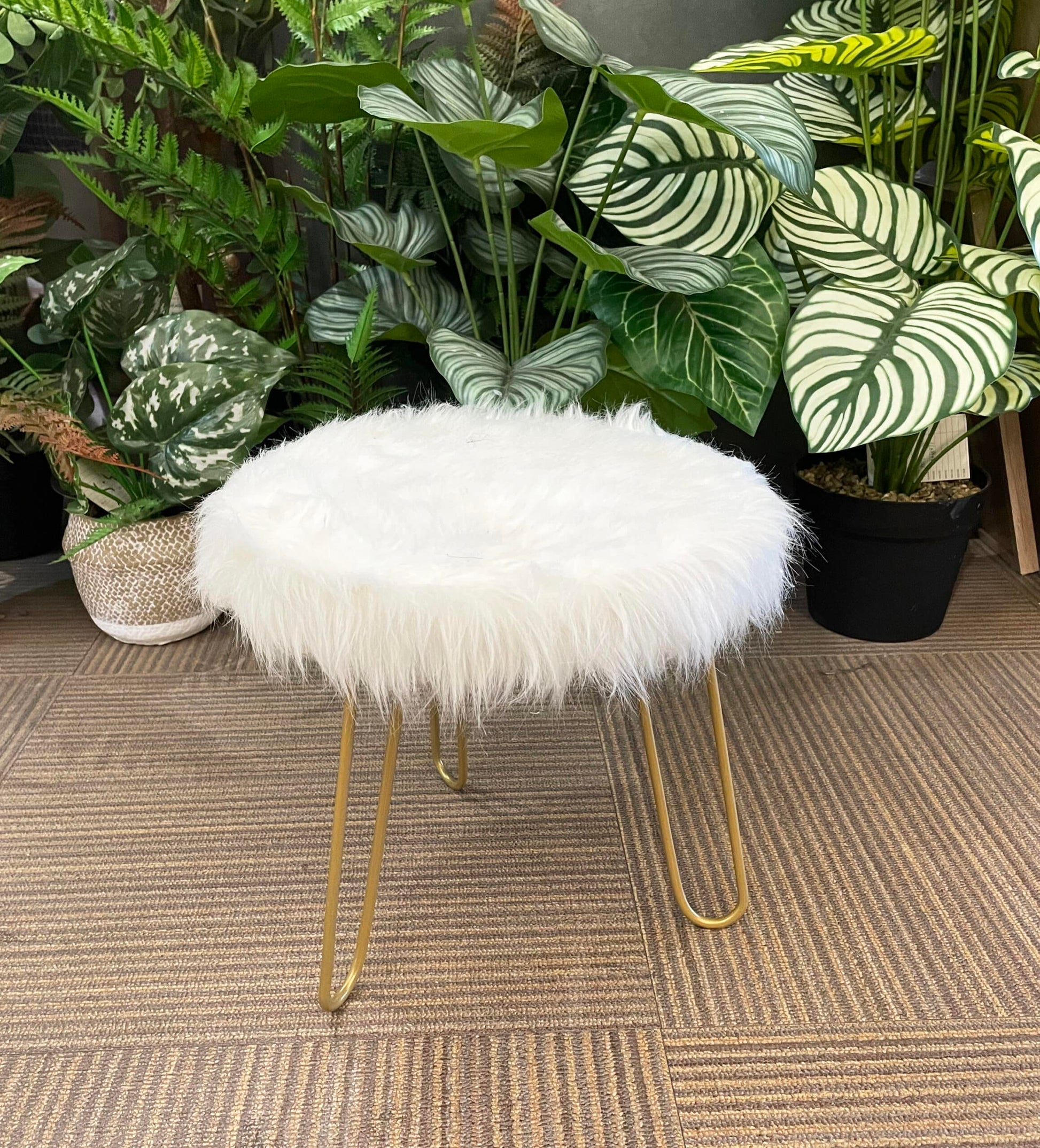 Faux Fur Shaggy White 3 Legged Child Stool / Footstool 30cm