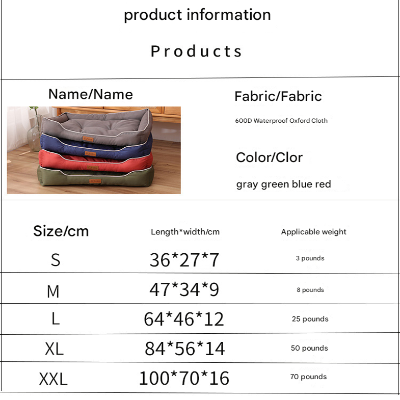 Give your pet a safe, comfortable, and long-lasting resting place with this rectangular pet bed—engineered for durability, comfort, and practicality. Designed for dogs and cats of medium to large size, it combines rugged 600D Oxford fabric, high-rebound PP cotton filling, and a removable cooling mat (included as a free gift) to support year-round well-being.