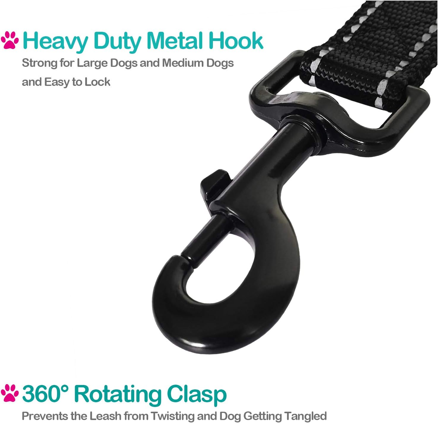 DURABLE AND SAFE - made of double-layer tightly nylon material and reflective threads, extra strong and sturdy for big dogs, and the double-sided reflective stitching stripes is great for nighttime visibility. More, heavy duty metal clip is tough enough for extra large dogs.