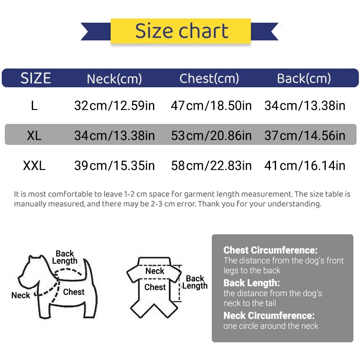 Please measure your dog’s neck, chest, and back length before purchasing and refer to the size chart.